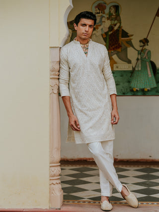 WHITE PYAAZI ROYAL SILK SHERWANI SET