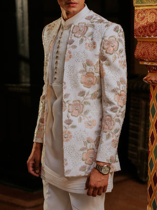 CLASSIC WHITE BROCADE SHERWANI SET
