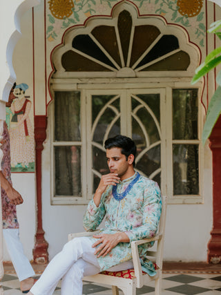 PISTA CREAM NAWABI SHERWANI SET