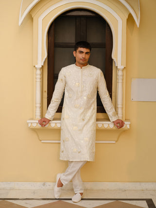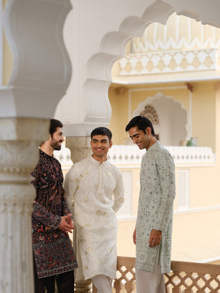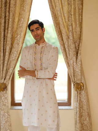 NAWAB NATURE WHITE SILK INDO WESTERN