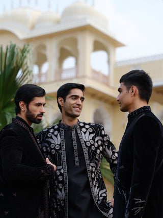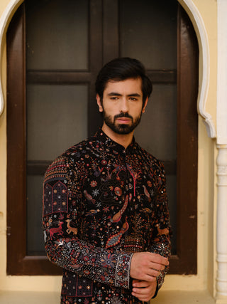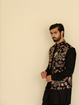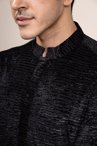 SULTAN SAFARI BLACK JACKET KURTA SET