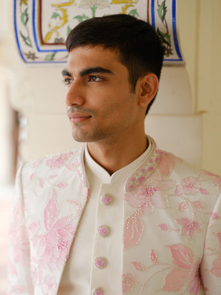NAWAB NATURE WHITE SILK INDO WESTERN