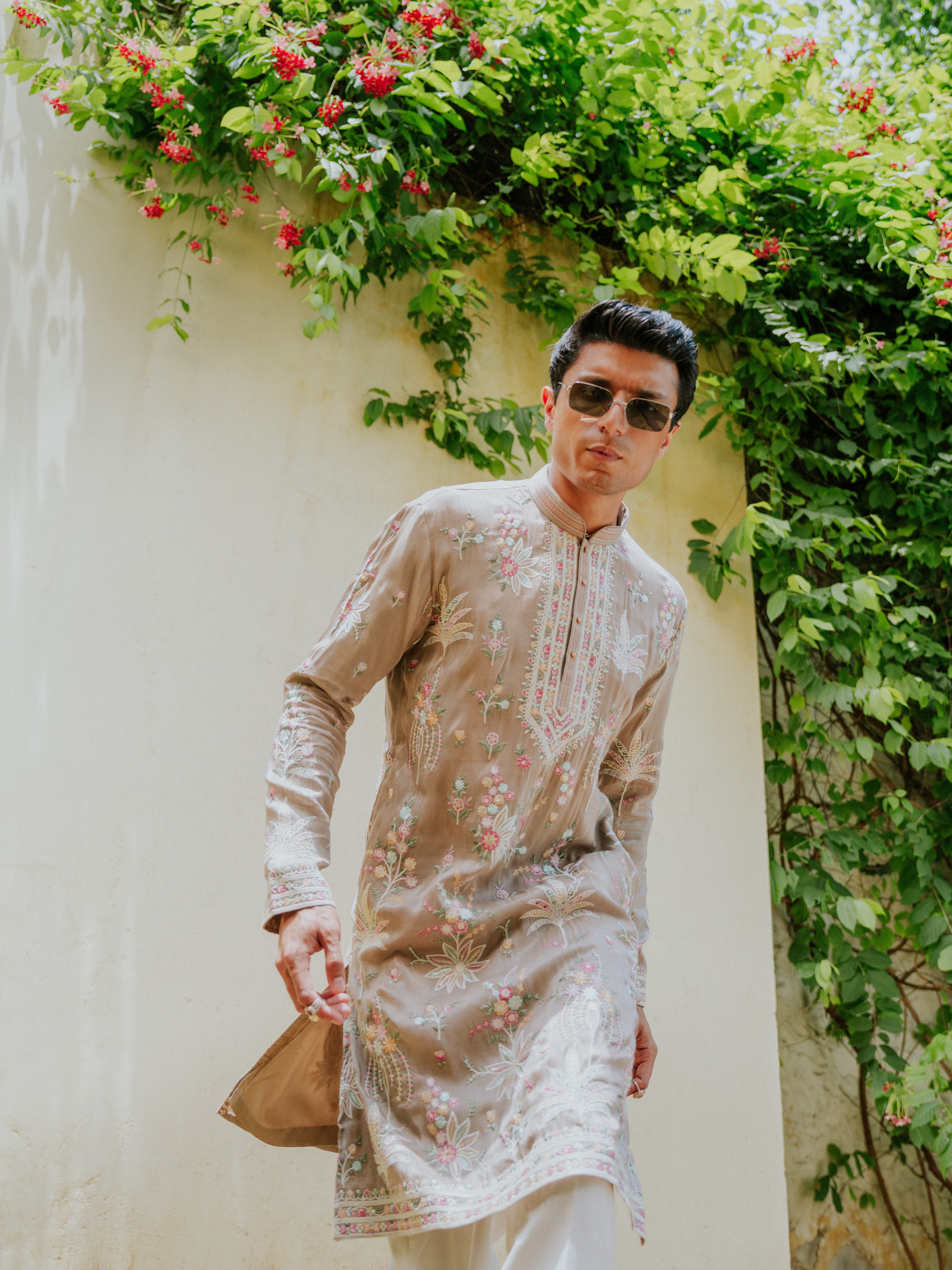 - Embroidery: Intricate Floral Thread & Sequin Work