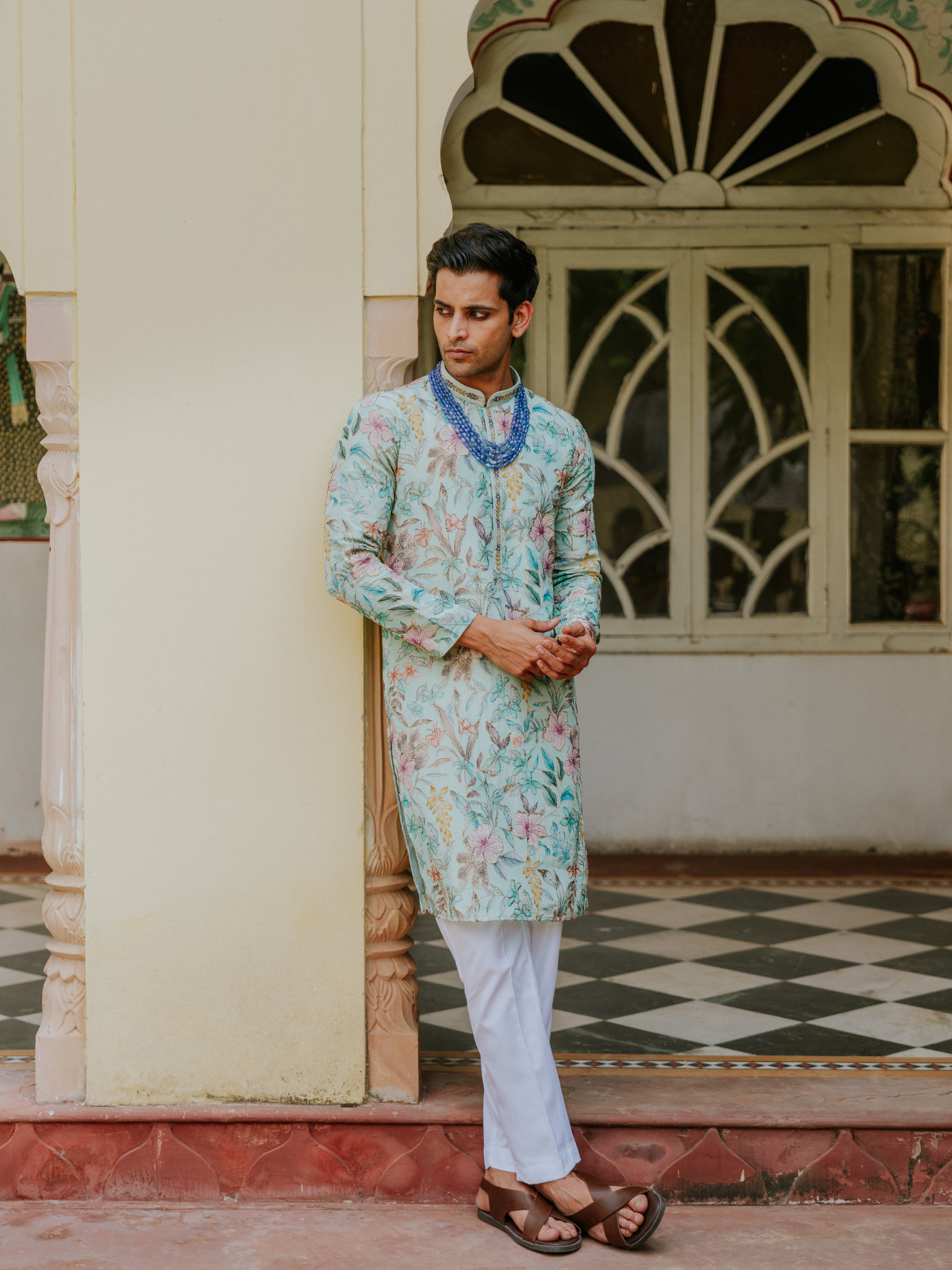 Our Neel Silk Kurta Set embodies the grace of Indian charm, making it ideal for your festive events. Bring a splash of rang and elegance to your wardrobe with intricate sequin work that promises to make you the center of attention at every jashn.