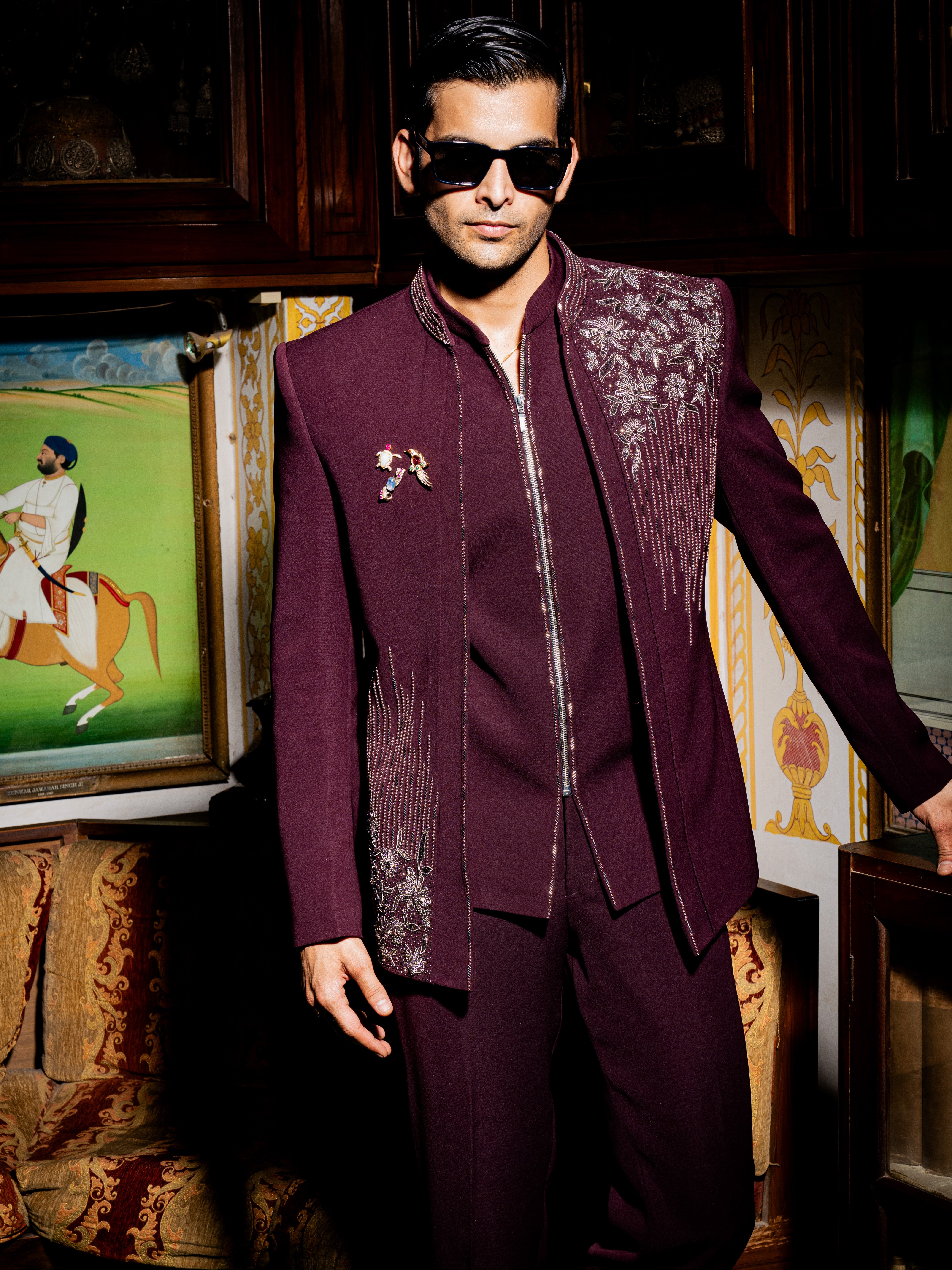 Stand out with our Wine Monarch Jodhpuri , crafted for the modern man who embraces heritage with style. This striking fusion piece adds a sophisticated cultural flair to the Western silhouette, making it an essential for every special occasion.