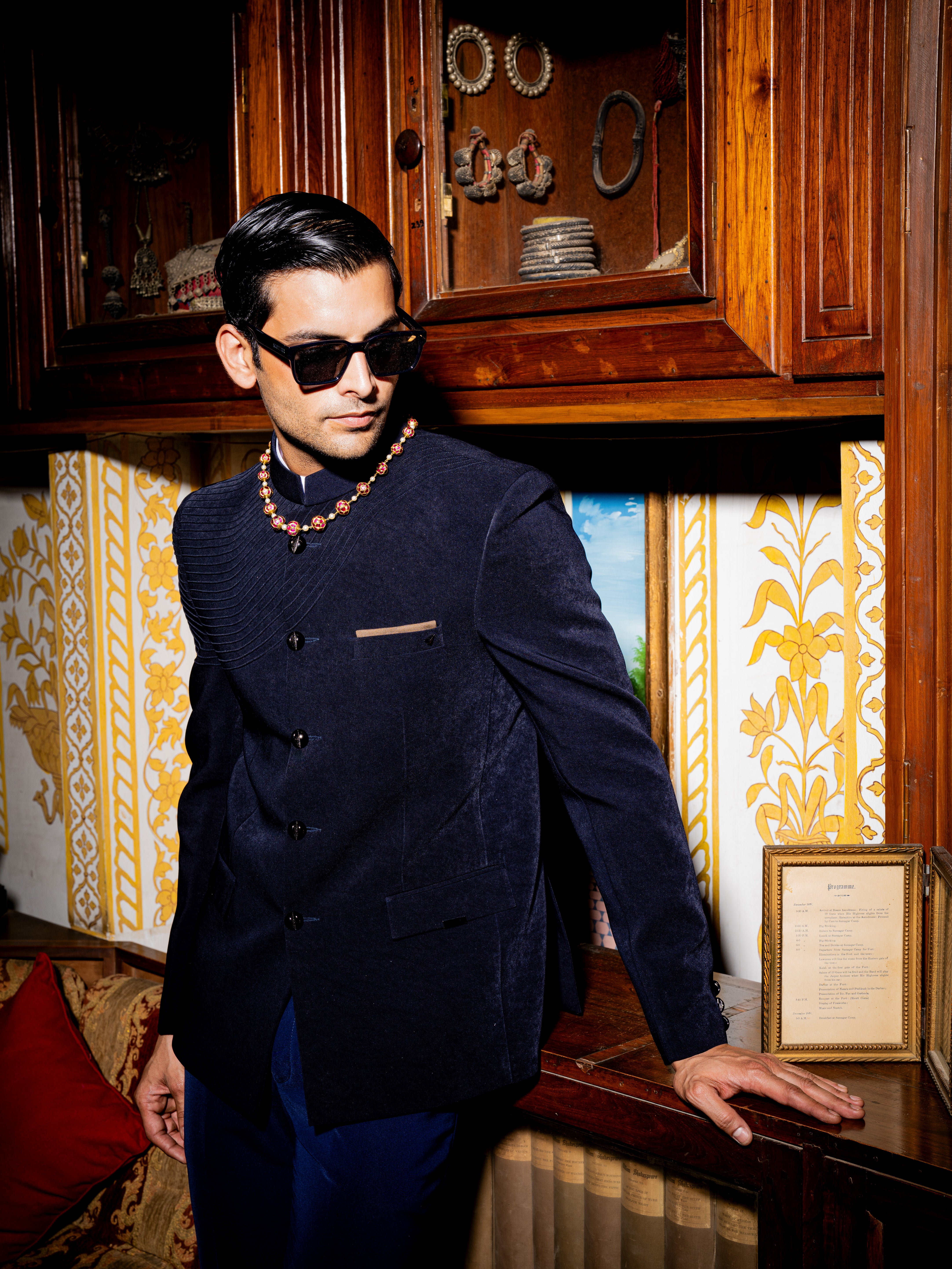 Stand out with our  Royal Blue Sapphire Jodhpuri , crafted for the modern man who embraces heritage with style. This striking fusion piece adds a sophisticated cultural flair to the Western silhouette, making it an essential for every special occasion.